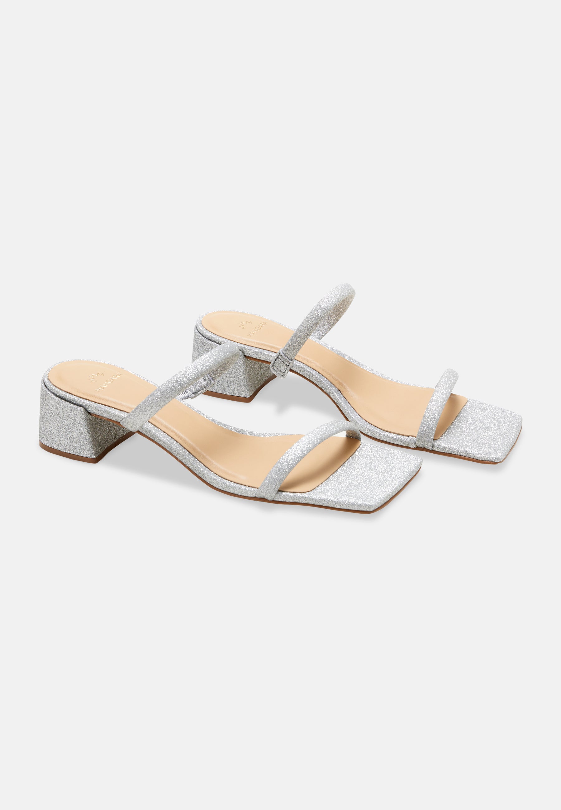 Silver Glitter Mules Maiate – Women’s 4 cm Low Block Heel Slip-On Sandals